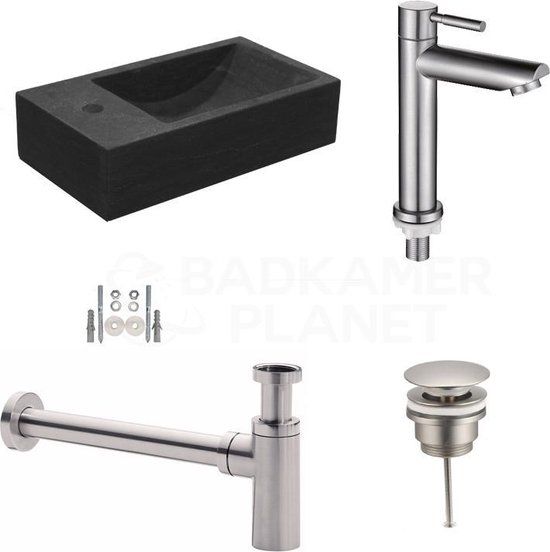 Bekijk productSani Royal Natuursteen Fonteinset Rimini - 40x22x10 cm - RVS Kraan, Afvoer en Sifon - Fonteinen