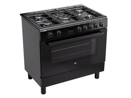 Fijn fornuis. Mooie vormgeving, alles is in zwart uitgevoerd. Eenvoudig te bedienen 5 pits met een grote wokpit in het midden met wokdrager. De oven is enorm, ideaal wanneer je meerdere gerechten tegelijk wil bereiden.