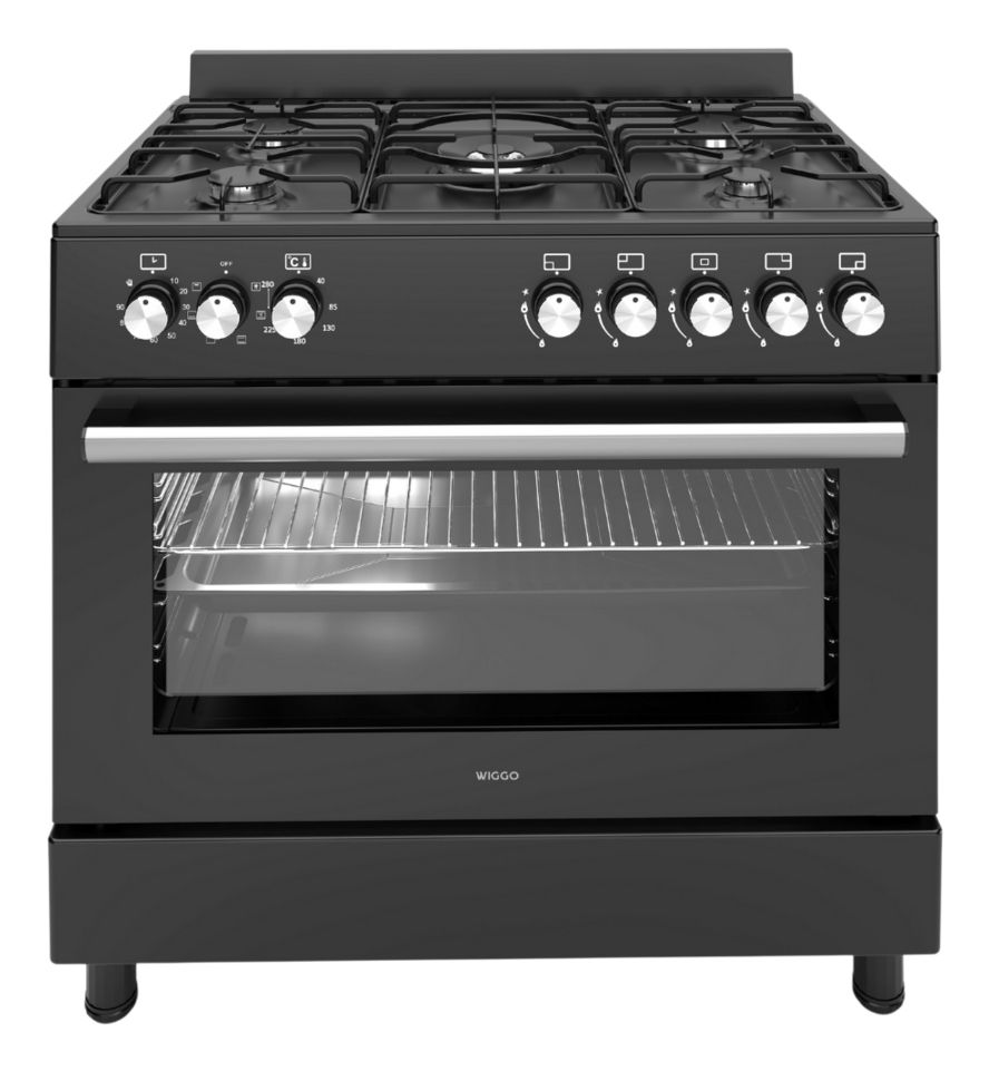 Wiggo WO-E906B(BB) - Vrijstaand Gasfornuis - 90 cm - 5 Pitten - Zwart - Fornuizen