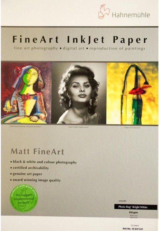 Hahnemuhle Photo Rag Bright White 310 grams 25 Vel A3+ Fabrikant: Hahnemuhle (Fine Art papier)Productnaam: Hahnemuhle Photo Rag Bright White 310 grams