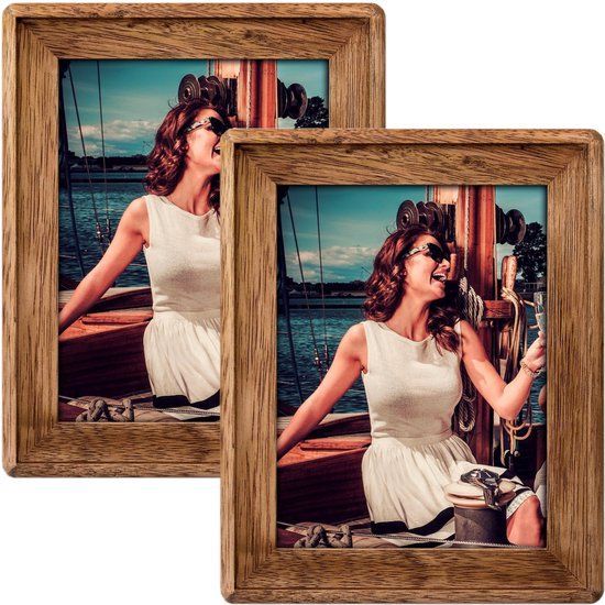 2 stuks fotolijst hout van ZEP. Deze bruine houten fotolijst is perfect voor het presenteren van een foto van 13 x 18 cm. Het warme houten frame geeft je interieur een natuurlijke en sfeervolle uitstraling. De lijst is voorzien van een glazen voorkant die je foto helder laat zien en beschermt tegen stof en beschadiging. Dankzij de standaard en het ophangoogje kun je de lijst zowel staand neerzetten als aan de muur ophangen. Afmeting lijst: ca. 18 x 23 x 2 cm.