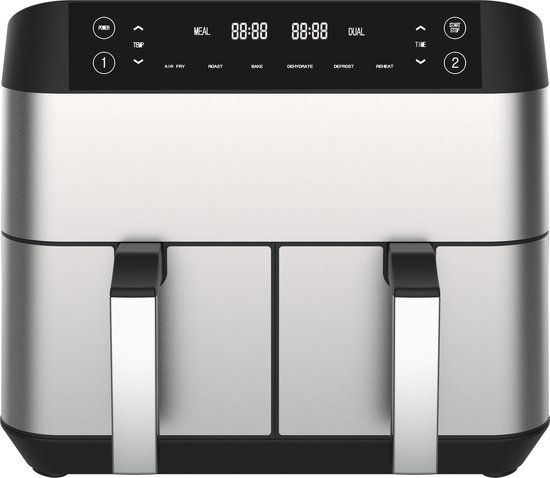 De krachtige motor van 2460 watt levert consistent, snel en gelijkmatig verwarmen. Dat betekent een knapperige buitenkant en een smaakvolle, sappige binnenkant - zonder vette olie. De dubbele Airfryer is zeer veelzijdig: van groenten en vis tot gebak en hartige gerechten, met dit veelzijdige apparaat ligt gezond en smakelijk eten binnen handbereik.Sterk, Stabiel en Betrouwbaar