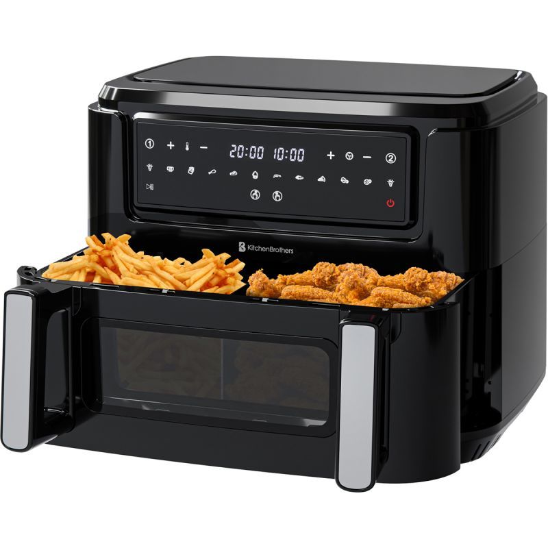 KitchenBrothers Dubbele Airfryer - 9L - 2400W - Dual Zone - Zwart - Frituurpan