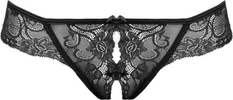 Kanten String Met Open Kruisje Marzia - Zwart - XL