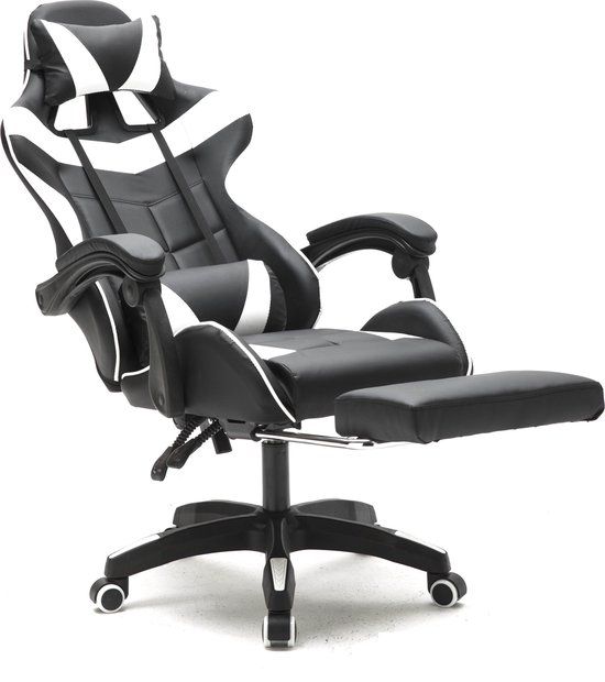 VDD Gaming - Gamestoel met Voetsteun - Zwart & Wit - Gamestoelen