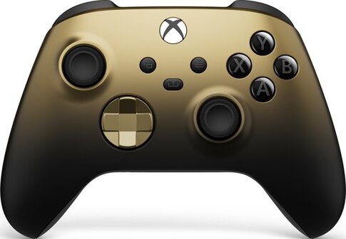 Ervaar het gemoderniseerde ontwerp van de Xbox Wireless Controller - Gold Shadow voor de Series X & S en Xbox One, met gebeeldhouwde oppervlakken en verfijnde geometrie voor meer comfort tijdens het gamen. Blijf op het doel met een hybride D-pad en gestructureerde grip op de triggers, bumpers en achterkant van de behuizing. Leg content zoals screenshots, opnames en meer naadloos vast en deel ze met de nieuwe Share-knop. Gebruik de Xbox Accessoires-app om knoppen opnieuw toe te wijzen en aangepaste controllerprofielen te maken voor je favoriete games. Koppel snel met, speel op en schakel tussen apparaten, waaronder Xbox Series X, Xbox One, Windows pc's, Android en in de toekomst iOS. Sluit een compatibele headset aan met de 3,5 mm audio-aansluiting.