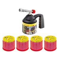 Rothenberger soldeerbrander met 4x C200 Super Gas cartridge. Branderset voor directe en duurzame inzetbaarheid. Met een werktemperatuur van 650 °C en hoogwaardige brander.