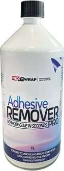 Zeer krachtige en snel werkende vloeistof voor het verwijderen van stickers en soortgelijke materialen van verschillende ondergronden. Sterk oplossend vermogen tegenover de meeste lijmtypes die voor etiketten e.d. toegepast worden. Nextwrap Adhesive Remover verwijdert binnen 120 seconden lijmresten van o.a. zelfklevende films en raamfolies, maar ook teer, vetten, smeermiddelen, kauwgom, enz. uit vloerbedekking, stoffen en van plastic-, perspex-, volkern, hardschuim, metaal, bisonyl, banners en geverfde oppervlakken.
