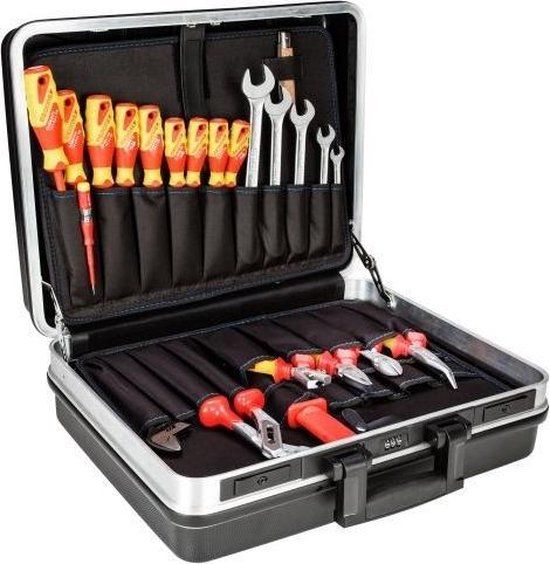 Een robuuste koffer van Gedore met een uitgebreid VDE assortiment. Het assortiment is praktijkgericht samengesteld voor gebruik op locatie. Door de robuuste frame van aluminium en het abs-kunststof is de koffer extreem stevig.
