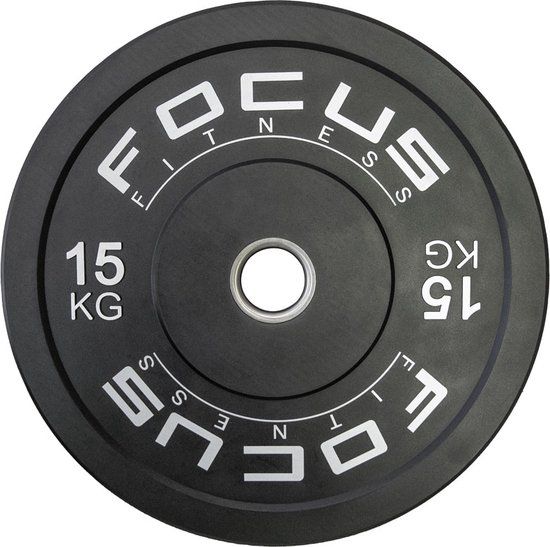 Focus Fitness Bumper Plate - 15 kg - 50 mm - Zwart - Gewichtsplaten
