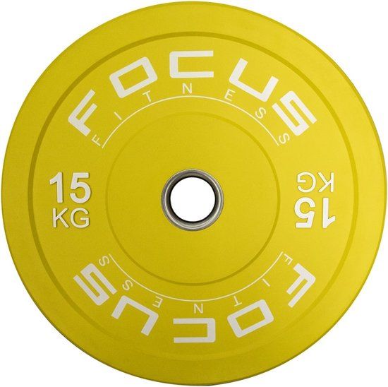 Focus Fitness Bumper Plate - 15 kg - 50 mm - Geel - Gewichtsplaten