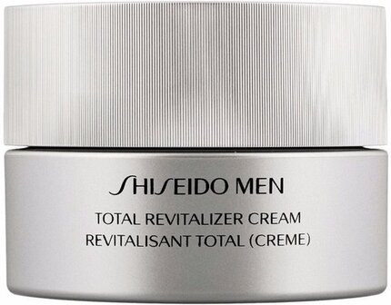 Shiseido total revitalizer cream is een anti-verouderingscrème die de tekenen van veroudering verbetert. Deze hoogwaardige behandeling voor alle huidtypen van mannen, verbetert de 5 belangrijkste huidproblemen, fijne lijntjes en rimpels, vermoeidheid, verslapping, ruwheid en dofheid zichtbaar voor een steviger, gerevitaliseerd en intens gehydrateerd uiterlijk gedurende 48 uur. De niet-plakkerige crèmetextuur trekt onmiddellijk in de huid en is vrij van parabenen en minerale oliën. Niet-comedogeen, dermatologisch getest. Shiseido total revitalizer cream is geformuleerd met rijstzemelen technologie bestaande uit rijstzemelen olie complex om de natuurlijke cel energie productie te bevorderen, xylitol om de huidvochtigheid en barrièrefunctie te verbeteren, nicotinamide om de collageen productie te stimuleren. Met toevoeging van kornoelje-extract om het herstellend vermogen van de huid te stimuleren tegen agressies van buitenaf.