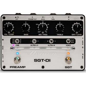 Ampeg onthult zijn SGT-DI baspedaal. In deze stompbox vind je een volledige basgitaarrig waarmee je gelijk in elke situatie kunt beginnen met spelen. Zo heb je de beschikking over een verbeterde versie van die Super Grit Technology overdrive-circuit, waarmee je kunt schakelen tussen de voices van de SVT en B15 basgitaarversterkers van Ampeg nadat je de preamp hebt ingetrapt met de linker voetschakelaar. Vervolgens heb je trouwens niet alleen een 3-bands equalizer om je sound mee te vormen, maar kun je het midden ook nog extra benadrukken of afzwakken door te kiezen uit frequenties van 200 Hz tot en met 3 kHz via het sweepable Mid circuit.