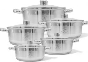 Royal Swiss - Pannenset - 10 delig - RVS - PFAS vrij - Geschikt voor alle warmtebronnen - Glazen deksels