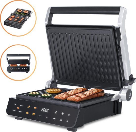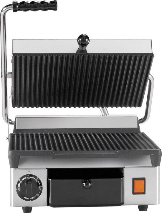 - Functies: Uitklapbaar, Indicatielampje / geluid, Zwevende topplaat, Anti-aanbaklaag, Vetafvoer / opvangbakje, Koude handgreep