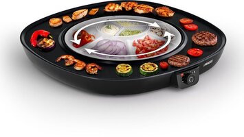 Dankzij de ronddraaiende serveerschaal in het midden, die in twee richtingen kan draaien, heeft iedereen zijn favoriete ingrediënten altijd binnen handbereik. De regelbare thermostaat zorgt ervoor dat elk gerecht precies de juiste temperatuur krijgt – of je nu smeltende kaas wilt, knapperige groente of perfect gebakken vlees.