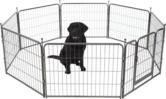 Ben je op zoek naar een veilige oplossing om jouw puppy of volwassen hond veilig en vrij te laten spelen? Met de luxe en stevige Infinity Goods hondenren geef je jouw huisdier altijd de vrijheid die hij of zij nodig heeft. Niet iedere tuin of buitenplaats of veilige speelplaats voor honden, een hondenren biedt hierbij de ideale oplossing. Of je nu een puppy aan het socialiseren bent of je jouw volwassen hond een veilige plek wilt bieden, met deze hondenren creëer je zowel binnen als buiten een comfortabele speelruimte. De hondenren is gemaakt van robuust staal en afgewerkt met een roestvrije zwarte coating waardoor deze niet alleen is, maar ook een stijlvolle uitstraling heeft. De hondenren heeft een handig deurtje waardoor je jouw hond eenvoudig naar binnen en buiten kunt laten gaan. Dankzij de eenvoudige montage zonder gereedschap en het compacte opvouwbare ontwerp, is deze puppyren eenvoudig mee te nemen en op te bergen. De hondenren beschikt over 8 extra stevige panelen van 80 x 60 cm, wat neerkomt op een totale omtrek van 680 cm. De ren is op te zetten in verschillende vormen. De hondenren is geschikt voor binnen- en buitengebruik. Kies voor kwaliteit, veiligheid en stijl en geef jouw trouwe viervoeter de speelruimte die hij of zij verdient!