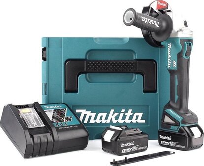 Makita DGA504RTJ 18V Li-Ion Accu haakse slijper set (2x 5.0Ah accu) in Mbox - 125mm - koolborstelloos - Haakse slijpers