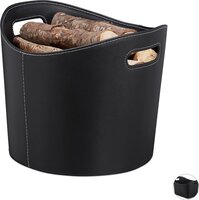 Relaxdays Houtmand Kunstleer - L - Zwart - Ovaal - Met Handgrepen - Haardproducten