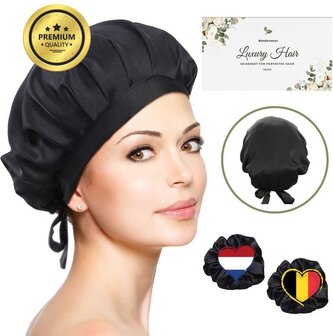 Wonderwear® Perfecte slaap set - Veganistische Zijde Slaapmuts - Zwart - Unisex - Haarnetjes