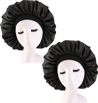 2x Sleepy Slaapmuts Zwart - Duo Haarverzorging - Dames Slaapmuts - Soft Bonnet - Satijnen - Satijn Bonnet - van Heble® - Haarnetjes