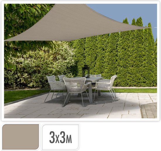 Schaduwdoek Vierkant 3x3m Zand - Merkloos - Hakbijlen