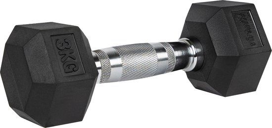VirtuFit Hexa Dumbbell Pro - 3 kg - Rubber - Zwart/Chroom - Per Stuk - Halters