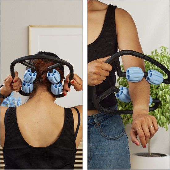 Bekijk productRelaxdays Nekmassage roller - Zwart/Lichtblauw - 4 wieltjes - Zelfmassage - Handmatige massagemiddelen
