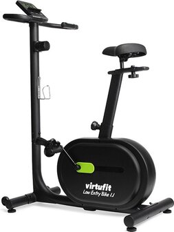 De Virtufit Low Entry Bike 1.1 is een stationaire fiets ontworpen voor efficiënt en comfortabel thuis trainen. Deze fiets, met zijn opmerkelijke 14 kg zwaar vliegwiel en magneet aandrijfsysteem, zorgt voor stabiele en fluweelzachte trappen ervaring. Met tien verschillende niveaus van magnetische weerstand kunt u uw trainingssessies aan uw individuele behoeften aanpassen. Een gemakkelijk te lezen LCD-display biedt real-time informatie over de tijd van uw training. Hoewel het geen hartslagmeting opties en voorgeïnstalleerde programma's heeft, biedt het standaard handgrip sensoren voor basis tracking. Voor een comfortabele rit is het zadel verticaal verstelbaar, en het stuur is zowel in hoogte als in kanteling aanpasbaar. Handige kenmerken zijn een smartphone/tablethouder voor entertainment tijdens het trainen en een bidonhouder voor gemakkelijke hydratatie. Ondanks dat de fiets niet inklapbaar is, zijn er transportwieltjes gepresenteerd, waardoor het gemakkelijk verrijdbaar is. Een extra lange zadelpen is voorzien voor langere gebruikers, en het stevige ontwerp kan tot 140 kg aan gebruikersgewicht ondersteunen. De lage instap- kenmerk vergemakkelijkt het monteren en demonteren, en de waterpas afstelbare voetjes zorgen voor stabiliteit op ongelijke vloeren. De fiets heeft een stevig en aantrekkelijk zwart design, waardoor het een aesthetische aanvulling op uw thuisgym kan zijn.
