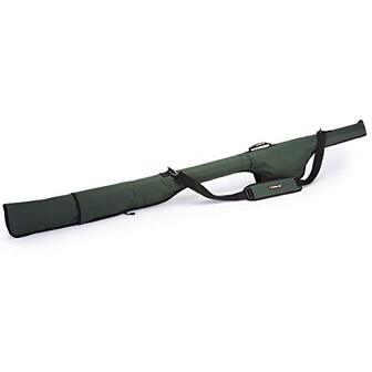 Een verstelbare lengte enkele staaf huls in staat om 12ft en 13ft staven op te slaan. De grote reel pouch is ruim formaat om grote pit rollen te huisvesten en het gebeeldhouwde profiel zorgt voor 50mm butt ringen. Compleet geleverd met een draagband, dit is een universele transportoplossing voor uw gemonteerde staven. Gevoerd en gevoerd. Verstelbare lengte