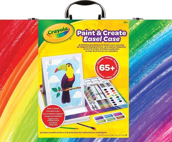 De Crayola Verf tekenkoffer heeft alles wat kinderen nodig hebben om op een gemakkelijke manier te schilderen en te creëren. De set bevat een duurzame en draagbare reiskoffer die het gemakkelijker dan ooit maakt om schilderbenodigdheden beschermd en georganiseerd te houden terwijl je onderweg bent! Daarnaast heeft de kleurkoffer ook een dubbelzijdige tafelmodel schilderezel, waardoor twee kunstenaars tegelijk aan het werk kunnen. Door de uitgebreide inhoud van de koffer is het mogelijk om verschillende schildertechnieken uit te proberen met de meegeleverde afwasbare kinderverf, aquarelverf, aquarelpotloden en meer. De verfartikelen van Crayola geven de meest heldere en felle kleuren. Deze kleurset bevat maar liefst 65 onderdelen. De verschillende verfsoorten zijn gemakkelijk afwasbaar van huid en kleding. UITGEBREIDE SET: Bevat opbergkoffer, dubbelzijdige schilderezel, 12 Verfpotten, 16 Aquarellen, 8 korte aquarelpotloden, 3 Schetspotloden, 2 witte kleurpotloden, 4 Verfpenselen, 2 mengbakken, 18 Pagina’s Aquarelpapier en verwisselbaar stickervel. UITWASBARE KLEUREN: Van uitwasbare viltstiften en uitwasbare gelpennen tot uitwasbare kleurpotloden en uitwasbare verven, we helpen je creatieve kind schoon en creatief te houden met producten die gemakkelijk van de kinderhuid en de meeste wasbare kleding kunnen worden gewassen. CADEAU VOOR KINDEREN: Dit kleurboek is een prachtig cadeau voor op verjaardagen, feestdagen en alledaagse cadeau-gelegenheden. CREATIEVE PROJECTEN: Of je nu een landschap meesterwerk maakt of T-shirts versiert met je vrienden en vriendinnen, Crayola heeft de viltstiften, verf, kleurpotloden en waskrijtjes die je nodig hebt om je project in heldere felle kleuren te laten uitkomen. VAN VILTSTIFTEN TOT STOEPKRIJT: Viltstiften voor kinderen of volwassenen, afwasbare verf, heldere kleurpotloden, zelfs geurende viltstiften, we hebben het allemaal! Crayola geeft kinderen de kracht om alles uit te drukken wat hen inspireert tijdens het verkennen, ontdekken, spelen, doen alsof, creëren en dromen. VERTROUWDE KWALITEIT: Crayola is gepassioneerd om ouders en opvoeders te helpen creatieve kinderen groot te brengen die geïnspireerde, originele volwassenen zullen worden. We hebben artistieke creativiteit bij kinderen geïnspireerd sinds de eerste doos met Crayola-waskrijtjes van de lopende band rolde.