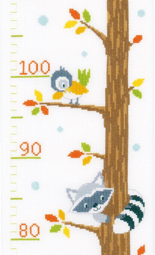 Vervaco Groeimeter Bosdiertjes in de boom - Borduurpakket - Hobbysets