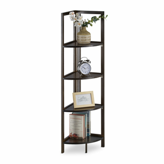 Merkloos Relaxdays Hoekkast - 4 Planken - Boekenkast Bamboe - Klapbaar - Donkerbruin - Hoekboekenkasten