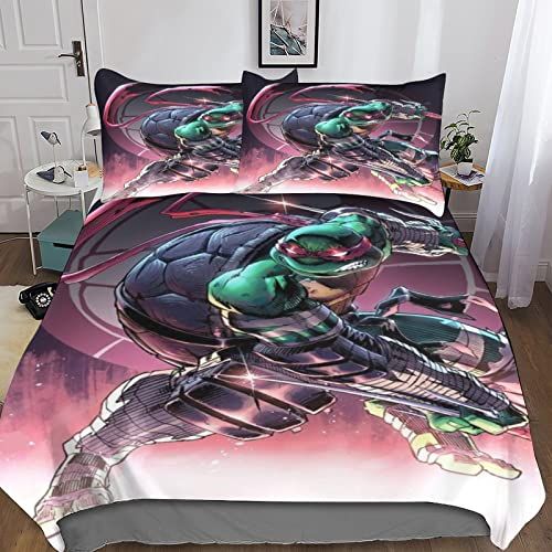 RZXYL Ninja Turtles Dekbedovertrek Set 3D Gedrukt Game Beddengoed Set Zachte Microfiber Dekbed Cover met Kussenslopen Rits Slaapkamer Decor 3 Stuks voor Tiener Volwassen Kids King (220x240cm) - Hoezen voor donsdekens