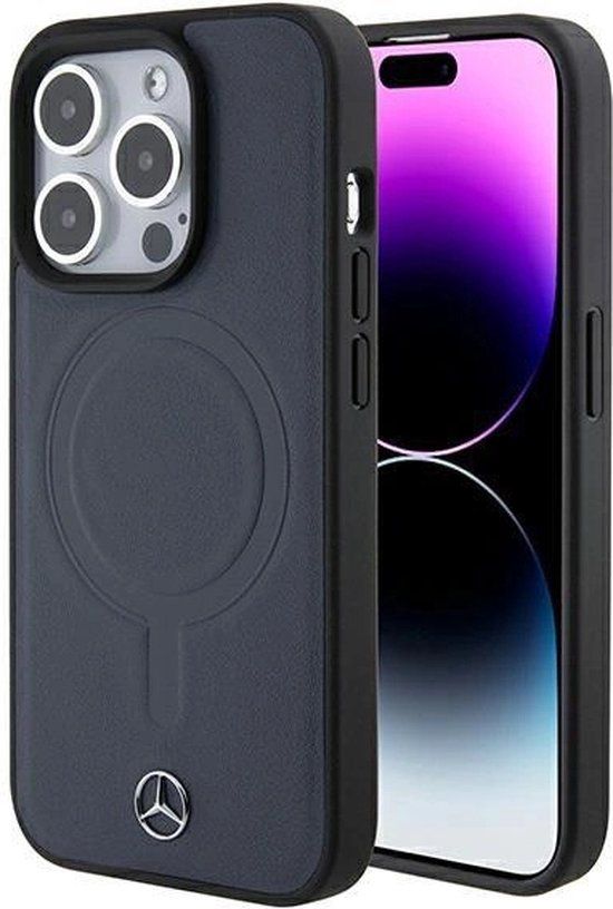 Mercedes-Benz Smooth Leather Back Case for iPhone 15 Pro - Blue - Hoezen voor mobiele telefoons
