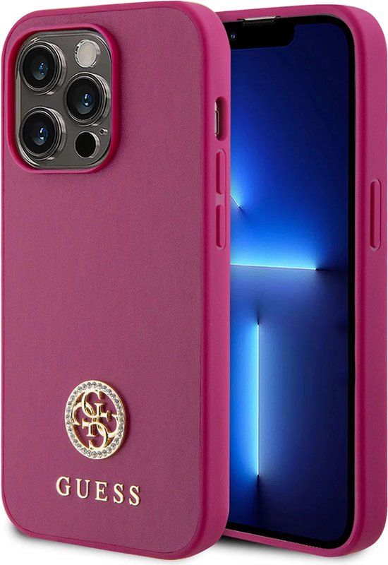 Guess 4G Strass Metal Logo Back Case - Apple iPhone 15 Pro Max - Roze - Hoezen voor mobiele telefoons