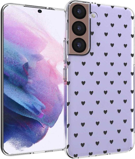 iMoshion Hoesje Samsung Galaxy S22 - Siliconen Back Cover - Hearts All Over Black - Hoezen voor mobiele telefoons