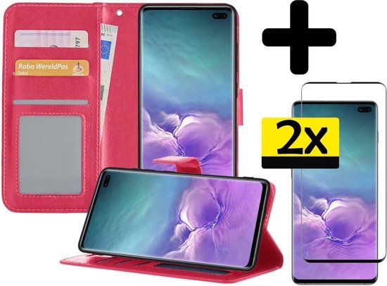 Trendy en praktisch bookcase hoesje met 2x screenprotector geschikt voor de Samsung Galaxy S10