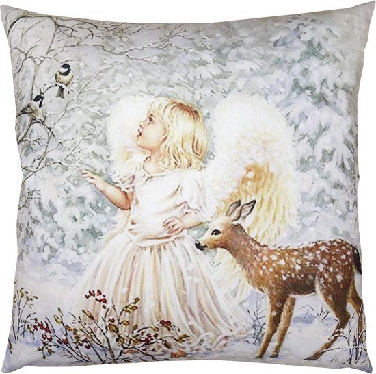 Clayre & Eef Kussenhoes 45x45 cm Wit Polyester Engel - Landelijk - Hoezen voor stoelkussens