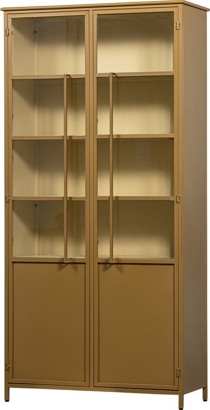 WOOOD Exhibit 2-deurs Vitrinekast XL - Metaal - Honinggeel - 200x99x44 - Hoge vitrinekasten