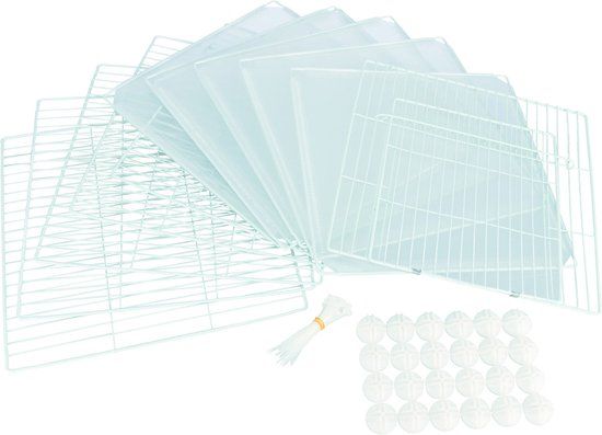 De Trixie indoor ren bestaat uit 12 componenten à 35x35 cm (6x van metaal en 6x van kunststof met metalen frame). De componenten zijn op verschillende manieren in elkaar te zetten en naar wens uit te breiden. ZO heeft jouw dier extra bewegingsruimte en biedt het ook bescherming aan meubels, planten en kabels. Voor konijntjes dient er minstens nog een ren opgezet te worden, omdat zij anders gemakkelijk over de rand zullen springen. De Trixie indoor ren is 140x35x70 cm groot.