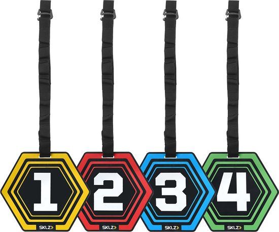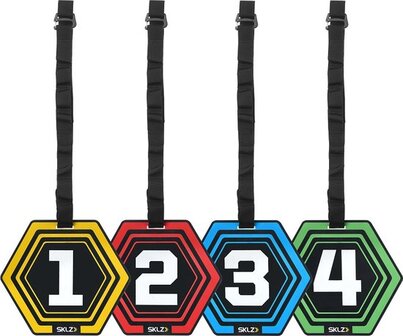 De SKLZ Reactive Agility Targets worden geleverd als set van 4 stuks. Deze zijn genummerd van 1 tot 4 en zijn allemaal voorzien van een eigen kleur: geel, groen, blauw en rood.