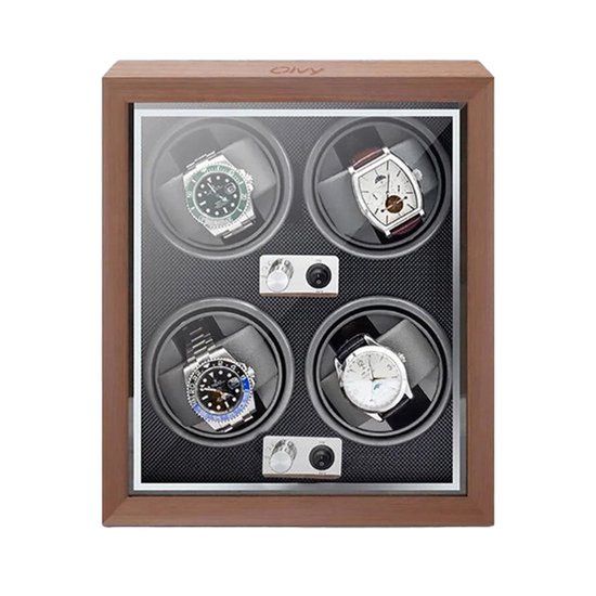 Olvy Time - Watchwinder Hout - 4 Horloges - Horloge Opwinder - Met LED Verlichting - Horlogebox - Horlogeopwinders