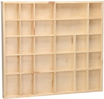 Of het nu gaat om speelfiguren, speelgoedauto's, vingerhoeden, sieraden, nagellak, parfum of vondsten van de laatste vakantie zoals schelpen, edelstenen, kristallen of mineralen. - in deze houten letterbak, die de afmetingen heeft van L 45 CM x B 40 CM x D 3,2 CM en in totaal 28 compartimenten van verschillende afmetingen bevat, vinden al uw favoriete stukken een geschikte plek om op te slaan.
