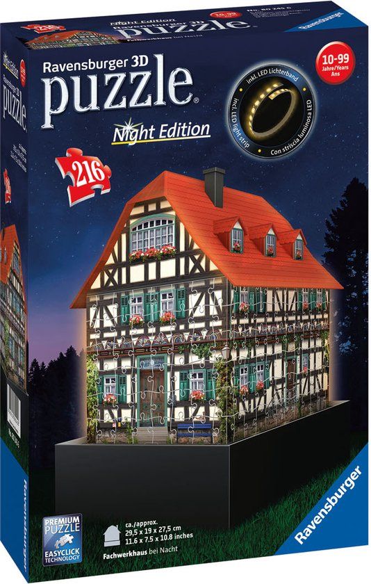 Bekijk productRavensburger Fachwerkhaus Night Edition 3D Puzzle - 216 Pieces - Houten puzzels