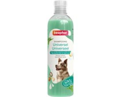 Beaphar Shampoo Universeel is een verzorgingsshampoo voor alle honden, die huid en vacht grondig reinigt. De milde samenstelling behoudt en versterkt de natuurlijke vachtkleur en voedt het haar vanaf de wortel. De shampoo is pH huidneutraal en geeft een frisse geur.