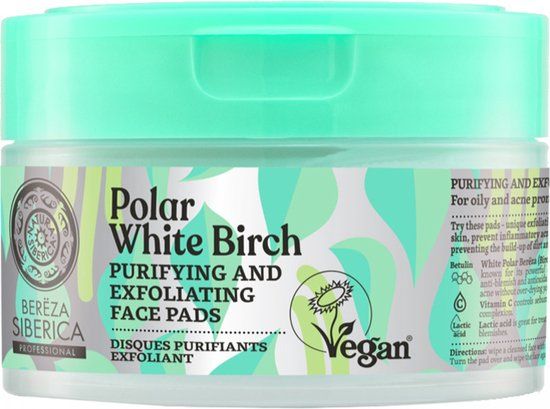 Natura Siberica Berëza Siberica Zuiverende Exfoliërende Schijven 20 Schijven zijn schijven die zijn ontworpen om make-up van het gezicht te verwijderen en tegelijkertijd de vette of acnegevoelige huid te scrubben. Ze zijn geïmpregneerd met een oplossing die is samengesteld om ontstekingsacne te voorkomen, terwijl de opbouw van talg, dat de poriën verstopt en tot puistjes leidt, wordt tegengegaan.Deze formule is rijk aan betuline, bekend om zijn ontstekingsremmende, verzachtende, smetbestrijdende en antioxiderende eigenschappen, om acne te helpen voorkomen zonder de huid uit te drogen.Vitamine C houdt de talgproductie onder controle en egaliseert de teint, terwijl melkzuur mee-eters en onregelmatigheden in de huid behandelt. Veganistisch.
