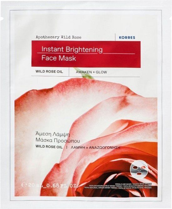 Korres Rose Sauvage D'Apothicaire Instant Radiance Gezichtsmasker 1 Doekmasker is een gezichtsmasker dat de huid een onmiddellijke glansboost geeft en tegelijkertijd voedt. Met zijn frisse, fluweelzachte textuur helpt het tekenen van vermoeidheid te verminderen voor een huid die er gerevitaliseerd, stralend en jeugdig uitziet. Wilde rozenolie, rijk aan vetzuren, biedt maximale hydratatie en voeding voor de huid.Alpine plantenextracten, rijk aan flavonoïden en polysacchariden, maken de huid glad en stralend gezond.Wegwerpmasker, 100% biologisch afbreekbaar en van 100% natuurlijke oorsprong. Zonder synthetische geurstoffen. Dermatologisch getest.