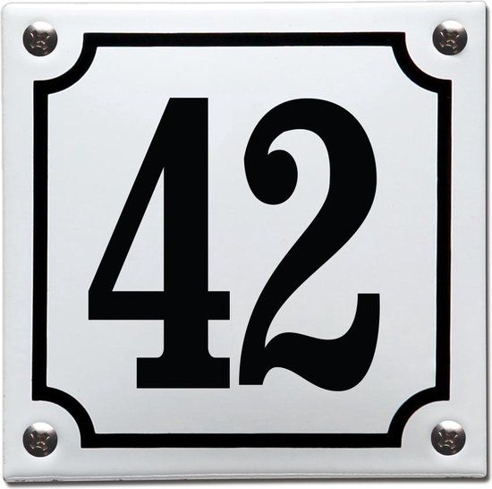 EmailleDesign® Emaille huisnummer wit/zwart nr. 42 - 10x10 cm - Huisnummers en -letters