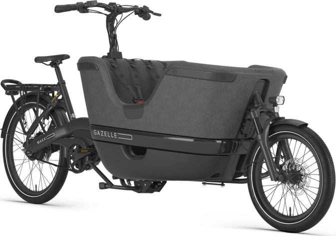 De bak voelt ‘zacht’ aan, is hoog en de kinderen zitten daardoor ook zonder zitkussentjes fijn. Vanwege het opstapje en de inkeping in de bak kunnen kinderen gemakkelijk zelf in- en uitstappen. We hebben ons verbaasd over de grootte van de bak. Met 2 kinderen op het bankje en een maxicosi in de houder, blijft er voldoende ruimte over om schooltassen of boodschappen te vervoeren.